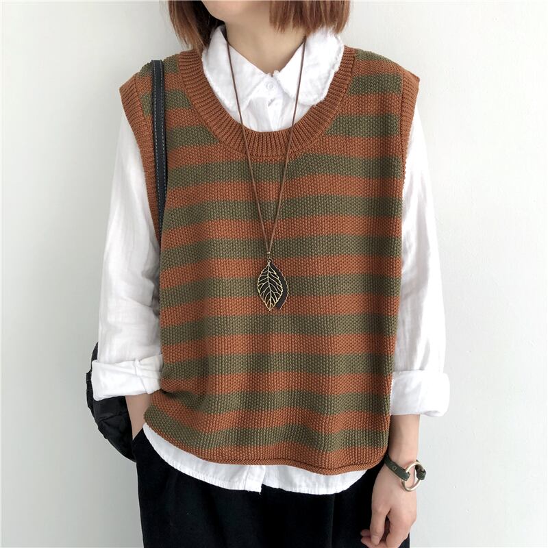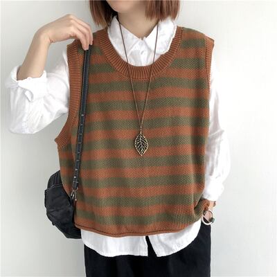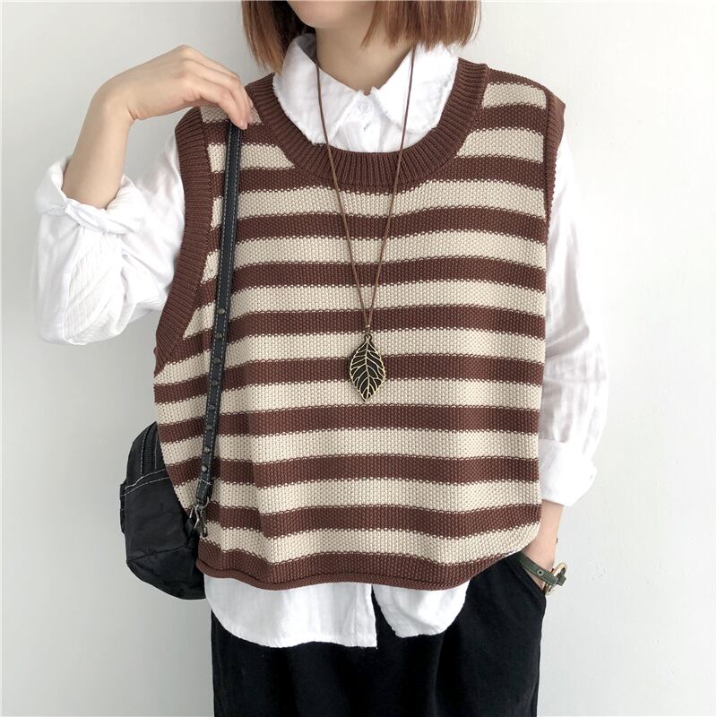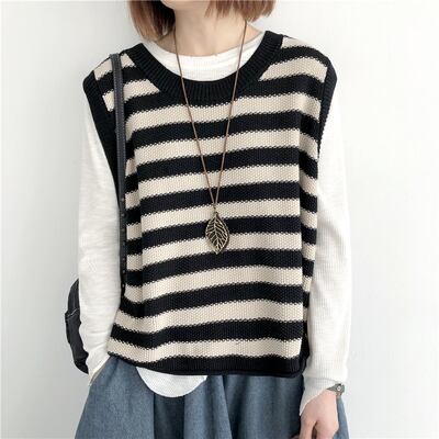 ボーダーニットベスト トップス プルオーバー ベスト 袖なし ノースリーブ ラウンドネック リブ 伸縮性 ニット かわいい 大人可愛い シンプル カジュアル 大人 おしゃれ お洒落 レトロ こなれ感 ラフ 存在感 ボーダー 春 秋 10代 20代 30代 40代 レディース 女性用 ママ 学生 通学 お出かけ 休日 旅行 着回し 普段使い 重ね着 ファッション コーデ スタイル 楽ちん 体型カバー フリーサイズ 黒 ブラック 茶色 ブラウン 灰色 グレー ベージュ カーキ | Ritta