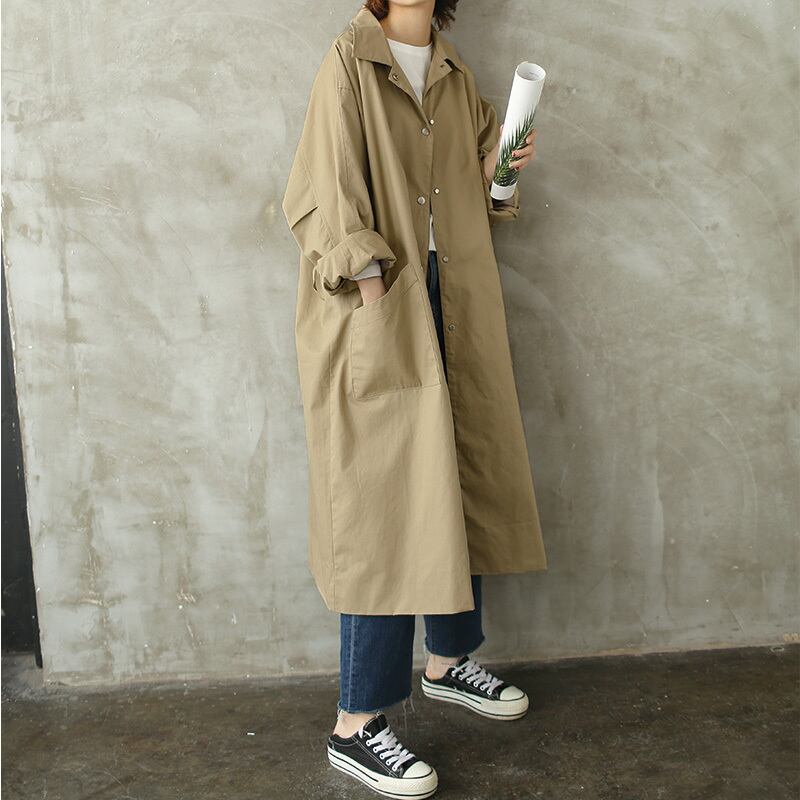 ロング丈コート アウター コート 上着 ロング ロング丈 袖あり 長袖 ボリューム袖 Vネック 襟付き ワイド ポケット 前開き 綿 かわいい 大人可愛い シンプル カジュアル 大人 おしゃれ お洒落 かっこいい レトロ 大人女子 こなれ感 ラフ メンズライク 存在感 無地 春 秋 入学式 入園式 卒業式 卒園式 10代 20代 30代 40代 レディース 女性用 ママ マタニティ 通勤 お出かけ 休日 着回し 普段使い ファッション スタイル コーデ ボタン XS S M L ゆったり ベージュ | Ritta