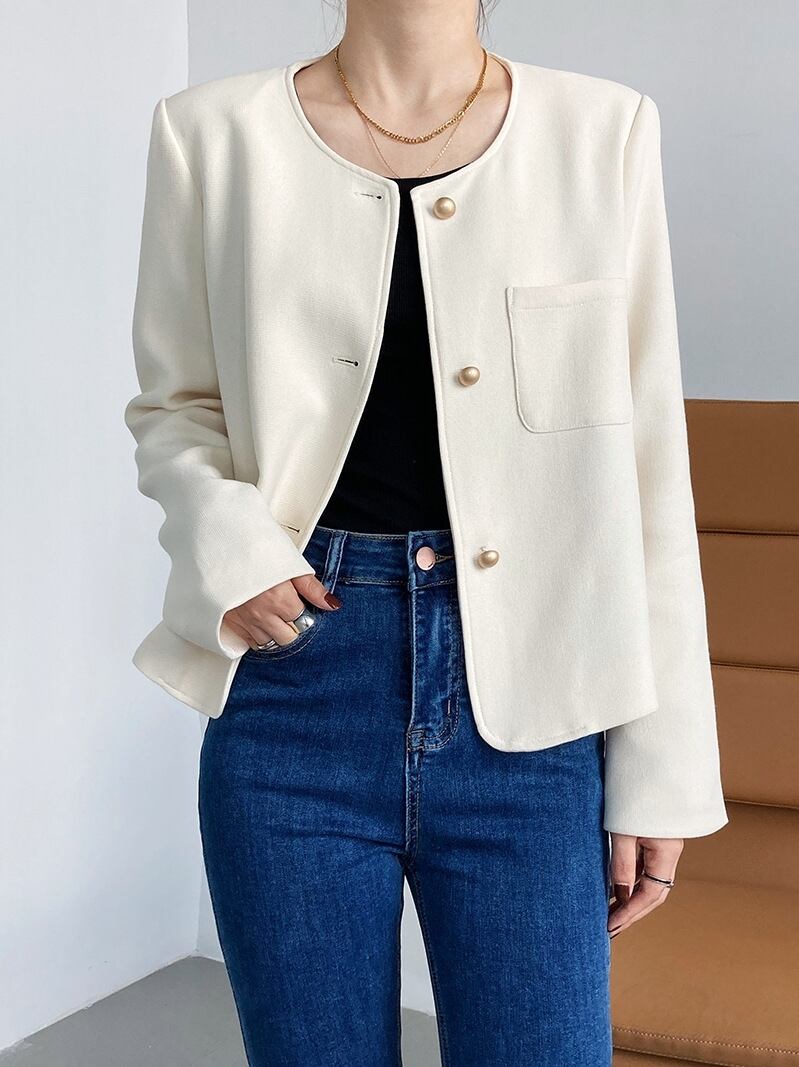 普段使いから通勤・フォーマルシーンまで使えるノーカラージャケット。