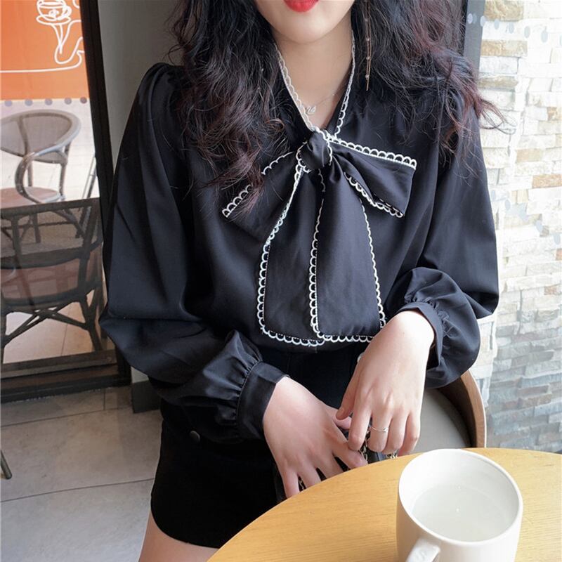 ビッグリボン パイピングデザイン トップス シャツ ブラウス 白シャツ 白トップス 袖あり 長袖 ボリューム袖 ストレート リボン かわいい 大人可愛い きれいめ シンプル カジュアル 大人 上品 おしゃれ お洒落 レトロ 大人女子 こなれ感 個性的 エレガント 主役級 存在感 無地 春 秋 10代 20代 30代 40代 レディース 女性用 オフィス 通勤 デート お出かけ 休日 着回し 普段使い 重ね着 ファッション コーデ スタイル フリーサイズ 白 ホワイト 黒 ブラック 赤 レッド | Ritta