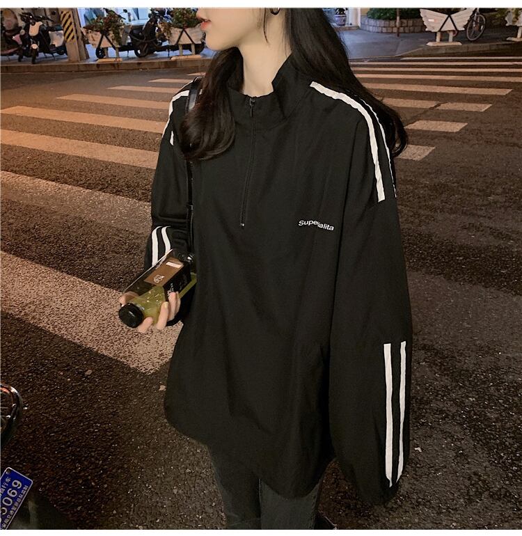 ハーフジップブルゾン サイドライン トップス アウター ブルゾン ジャンパー 上着 袖あり 長袖 スタンドカラー ストレート 綿 シンプル カジュアル おしゃれ お洒落 かっこいい こなれ感 ラフ メンズライク ボーイッシュ スポーティー クール 無地 春 秋 10代 20代 30代 40代 レディース 女性用 ママ 学生 通学 お出かけ 休日 アウトドア 着回し 普段使い 重ね着 ファッション コーデ スタイル 楽ちん 体型カバー トレンド M L XL 2XL ゆったり 黒 ブラック | Ritta