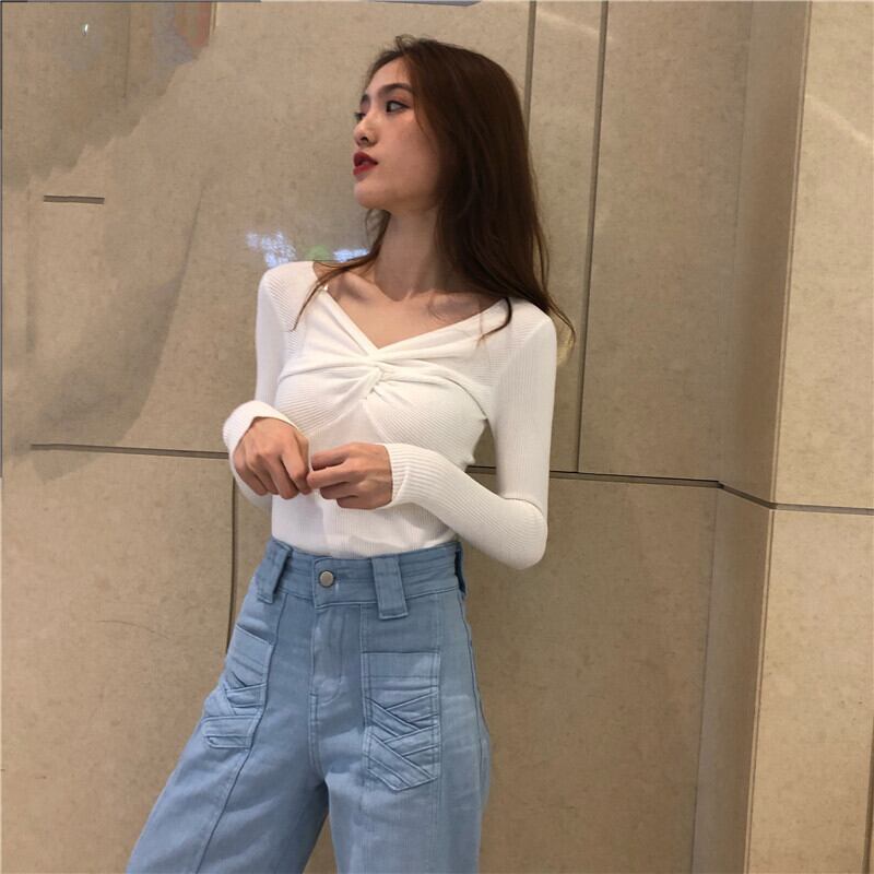 トップス ニットソー セーター 白トップス 長袖 Vネック スリム タイト 細身 リブ リブニット 薄手 大人可愛い きれいめ シンプル カジュアル 上品 おしゃれ ガーリー セクシー エレガント 無地 秋 冬 10代 20代 30代 40代 オフィス ビジネス OL 通勤 学生 通学 デート お出かけ 休日 旅行 ホテル レストラン 着回し 普段使い お揃い 双子 ファッション コーデ スタイル モテ 定番 S M L XL 白 ホワイト 黒 ブラック 赤 レッド 青 ブルー 緑 グリーン ピンク | Ritta