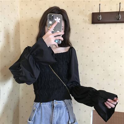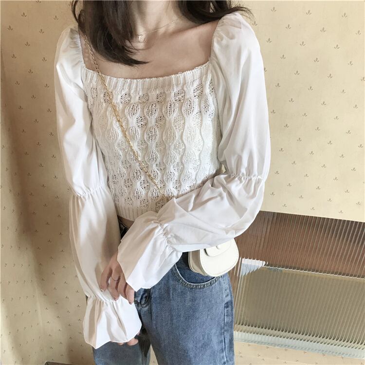 ニット×シフォン ドッキングデザイン トップス プルオーバー ショート ショート丈 袖あり 長袖 ボリューム袖 スクエアネック ストレート 切り替えデザイン ドッキング シフォン 伸縮性 かわいい 大人可愛い シンプル カジュアル 大人 おしゃれ お洒落 レトロ 大人女子 こなれ感 ラブリー キュート ガーリー 個性的 存在感 無地 春 秋 10代 20代 レディース 女性用 デート お出かけ 着回し 普段使い フリーサイズ 白 ホワイト 黒 ブラック カーキ ピンク | Ritta