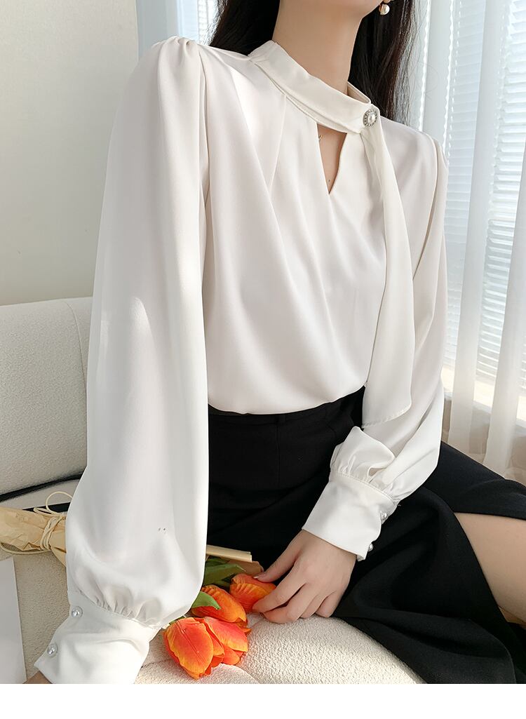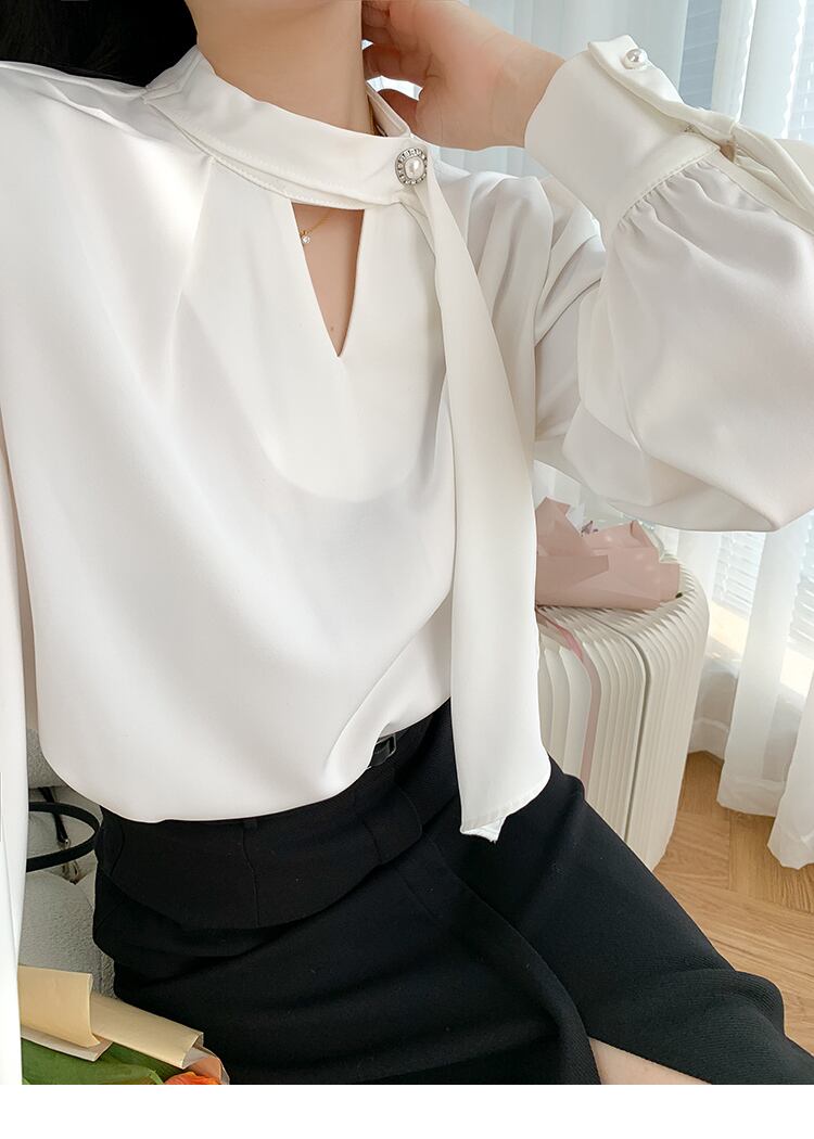 とろみブラウス スカーフ トップス シャツ ブラウス 白シャツ 白トップス 袖あり 長袖 ボリューム袖 スタンドカラー ストレート リボン 透け感 きれいめ シンプル 大人 上品 おしゃれ お洒落 かっこいい レトロ 大人女子 こなれ感 エレガント フォーマル とろみ感 無地 春 夏 秋 入学式 入園式 卒業式 卒園式 謝恩会 20代 30代 40代 レディース 女性用 ママ OL 通勤 デート お出かけ 休日 着回し 普段使い 重ね着 ファッション スタイル S M L XL 白 ホワイト シャンパン | Ritta