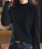 インナーのブラックのカットソーは控えめのハイネックで、ジレとの相性はもちろん良いのですが、1枚でトップスとして着ることもできるアイテムです。