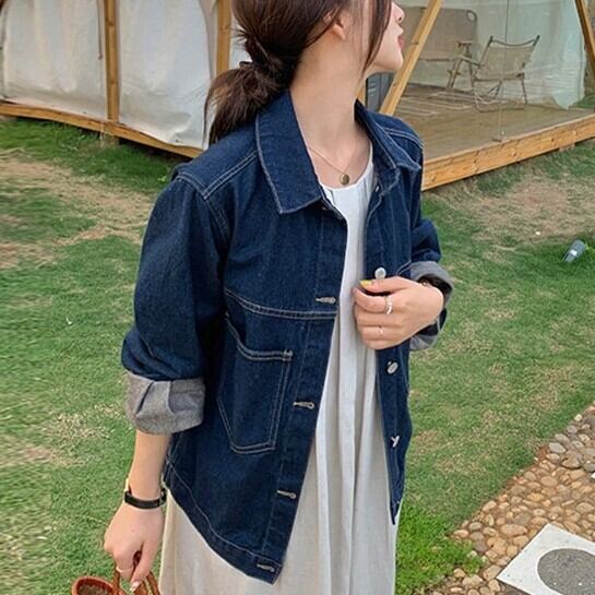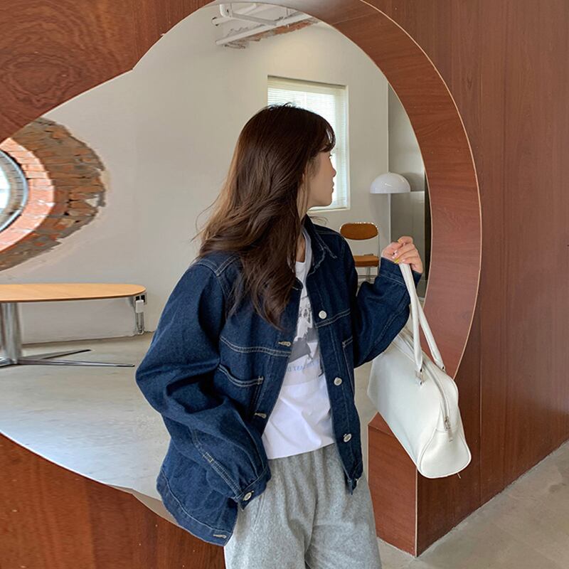 アウター ジャケット Gジャン 上着 ミディアム丈 長袖 ボリューム袖 襟付き ストレート ワイド ポケット 前開き デニム ブルーデニム 厚手 かわいい 大人可愛い シンプル カジュアル おしゃれ かっこいい ラフ メンズライク マニッシュ ボーイッシュ ルーズ 無地 春 秋 冬 10代 20代 30代 40代 学生 通学 デート お出かけ 休日 旅行 着回し 普段使い 暖かい 体系カバー 定番 XS S M L XL 2XL 3XL 大きいサイズ 大きめ ビッグサイズ ゆったり ゆる 青 ブルー | Ritta