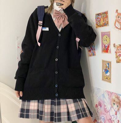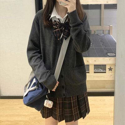 シンプルなデザインで使いやすいスクールニットカーディガン。