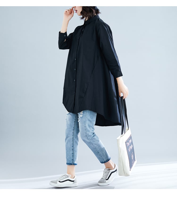 Aラインロングシャツ トップス シャツ ブラウス 白シャツ 白トップス ロング ロング丈 袖あり 長袖 バンドカラー ワイド Aライン 前開き 透け感 かわいい 大人可愛い シンプル カジュアル 大人 上品 おしゃれ お洒落 かっこいい 大人女子 こなれ感 ラフ クール 存在感 無地 春 夏 秋 10代 20代 30代 40代 50代 60代 レディース 女性用 ママ マタニティ 学生 通学 お出かけ 休日 着回し 普段使い 重ね着 楽ちん 体型カバー L XL ゆったり 白 ホワイト 黒 | Ritta