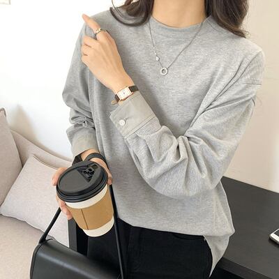 トップス カットソー 袖あり 長袖 ラウンドネック ストレート 伸縮性 かわいい 大人可愛い シンプル カジュアル 大人 おしゃれ お洒落 大人女子 こなれ感 ラフ 無地 春 秋 20代 30代 40代 レディース 女性用 ママ お出かけ 休日 着回し 普段使い 重ね着 ファッション コーデ スタイル 楽ちん 定番 ゆったり ゆる S M L XL 白 ホワイト 青 ブルー ライトグレー ダークグレー レイヤードコーデ カラーバリエーション 袖ボタン ボトムスイン | Ritta