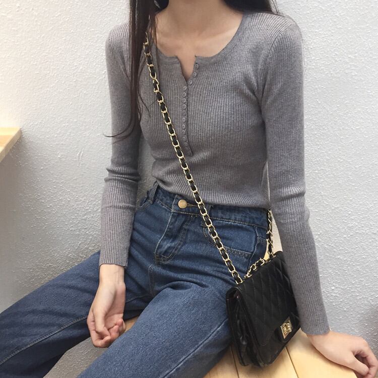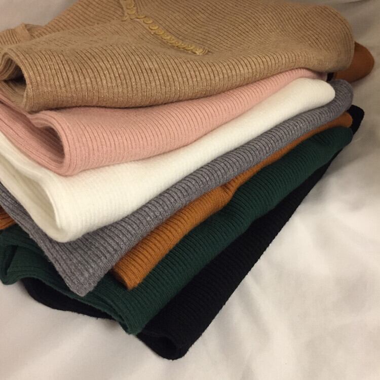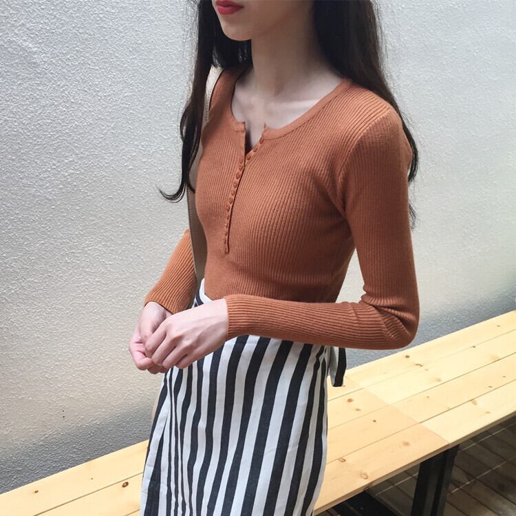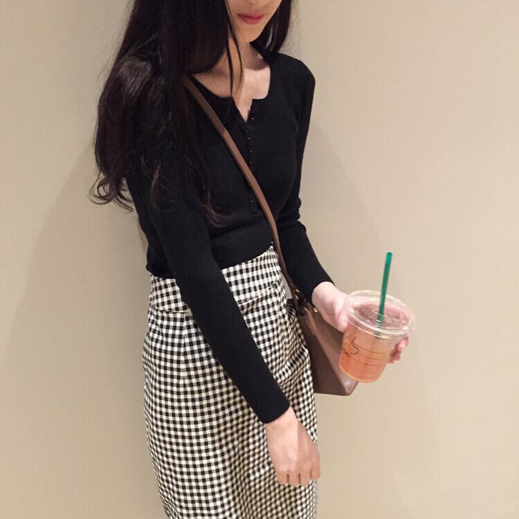 体のラインを美しく見せる、ヘンリーネックのリブカットソーです。