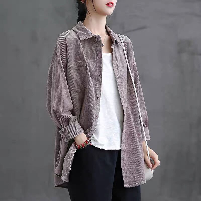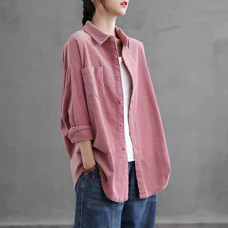 コーデュロイシャツ オーバーサイズ トップス シャツ 袖あり 長袖 ドロップショルダー 襟付き Aライン ポケット 前開き 綿 かわいい 大人可愛い シンプル カジュアル 大人 おしゃれ お洒落 かっこいい 大人女子 こなれ感 ラフ メンズライク ボーイッシュ 無地 春 秋 10代 20代 30代 40代 レディース 女性用 ママ お出かけ 休日 アウトドア 着回し 普段使い 重ね着 ファッション コーデ スタイル 楽ちん M L XL 2XL ゆったり 灰色 グレー ピンク オレンジ | Ritta