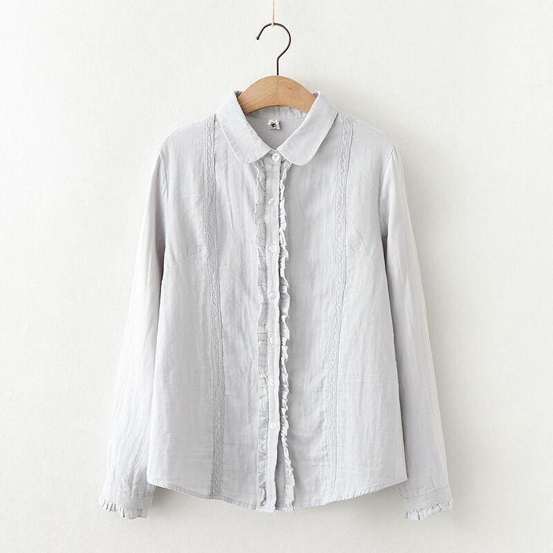 トップス シャツ ブラウス 白シャツ ミディアム丈 長袖 襟付き ストレート レース フリル 前開き 綿 薄手 かわいい きれいめ シンプル 上品 おしゃれ レトロ 大人女子 こなれ感 ラブリー キュート ガーリー 無地 春 秋 10代 20代 30代 レディース 女性用 ママ 女の子 オフィス ビジネス OL 通勤 学生 通学 デート お出かけ 休日 高原 ホテル ガーデン レストラン 着回し 普段使い S M L XL ゆったり ゆる 白 ホワイト 青 ブルー 灰色 グレー ピンク くすみカラー | Ritta