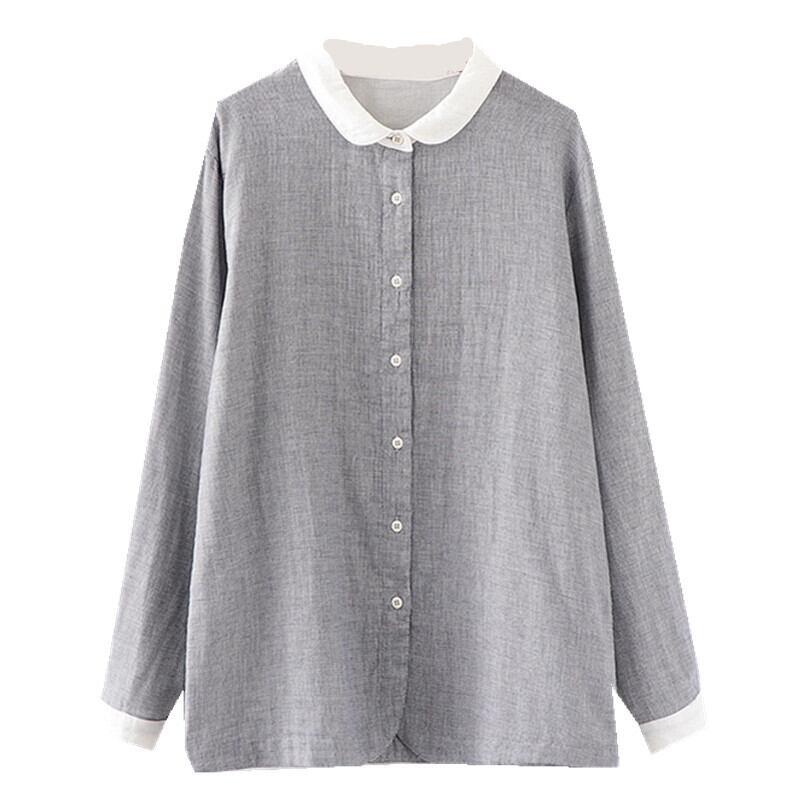 一見グレーのように見える、細かな千鳥格子の丸襟がキュートなブラウス。