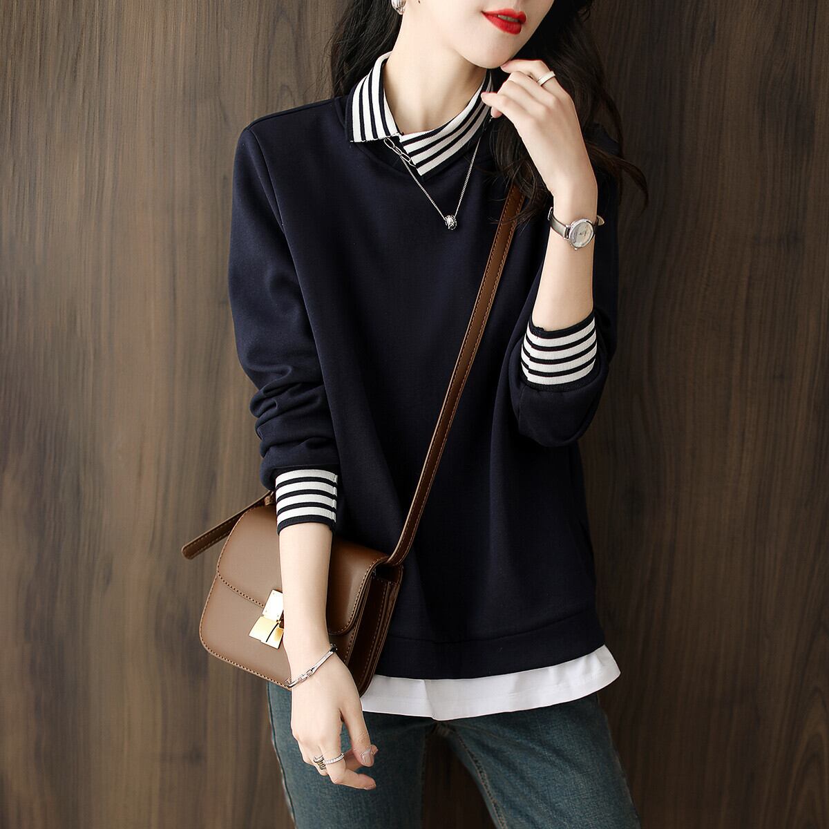 トップス シャツ ニットソー 袖あり 長袖 襟付き スリム ストレート アシンメトリー ドッキング 伸縮性 ニット かわいい 大人可愛い きれいめ シンプル 大人 上品 おしゃれ お洒落 かっこいい 大人女子 こなれ感 ラブリー キュート 個性的 クール エレガント 存在感 とろみ感 抜け感 無地 ストライプ 秋 冬 レディース 女性用 ママ ビジネス OL 通勤 デート お出かけ 女子会 パーティー イベント リゾート 旅行 高原 ホテル ガーデン レストラン 重ね着 スタイル インスタ映え ネイビー | Ritta
