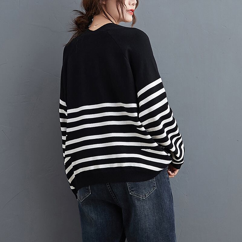 トップス ニットソー セーター プルオーバー ミディアム丈 袖あり 長袖 ボリューム袖 萌袖 Vネック 襟なし ストレート リブ ニット 大人可愛い きれいめ シンプル カジュアル 上品 おしゃれ 大人女子 ラフ ルーズ とろみ感 ボーダー 春 秋 20代 30代 40代 50代 60代 レディース 女性用 女の子 ビジネス OL 通勤 学生 通学 お出かけ 女子会 休日 旅行 着回し 普段使い 体系カバー 定番 フリーサイズ ゆったり ゆる 白 ホワイト 黒 ブラック モノトーン | Ritta