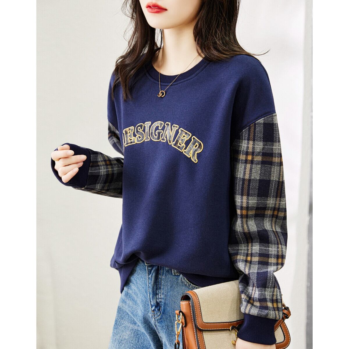 カレッジロゴプルオーバー チェック柄スリーブ トップス プルオーバー 袖あり 長袖 ドロップショルダー 袖コンシャス ラウンドネック ストレート 切り替えデザイン 伸縮性 かわいい 大人可愛い シンプル カジュアル おしゃれ お洒落 大人女子 こなれ感 ラフ 存在感 無地 チェック柄 格子柄 春 秋 10代 20代 30代 40代 レディース 女性用 デート お出かけ 休日 アウトドア 着回し 普段使い ファッション コーデ スタイル S M L XL 2XL 灰色 グレー ネイビー | Ritta