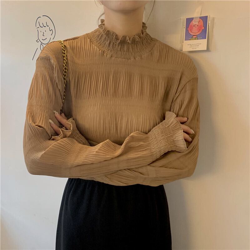 トップス ブラウス 袖あり 長袖 萌袖 ハイネック 襟なし スリム 細身 ストレート Iライン シフォン フリル 透け感 伸縮性 薄手 かわいい 大人可愛い きれいめ 大人 上品 おしゃれ お洒落 大人女子 こなれ感 ラブリー キュート ガーリー 個性的 クール セクシー エレガント モダン とろみ感 抜け感 無地 オールシーズン シーズンレス レディース 女性用 ママ ビジネス OL 通勤 デート 女子会 お泊まり 休日 パーティー イベント リゾート 旅行 高原 ホテル ガーデン レストラン 重ね着 | Ritta