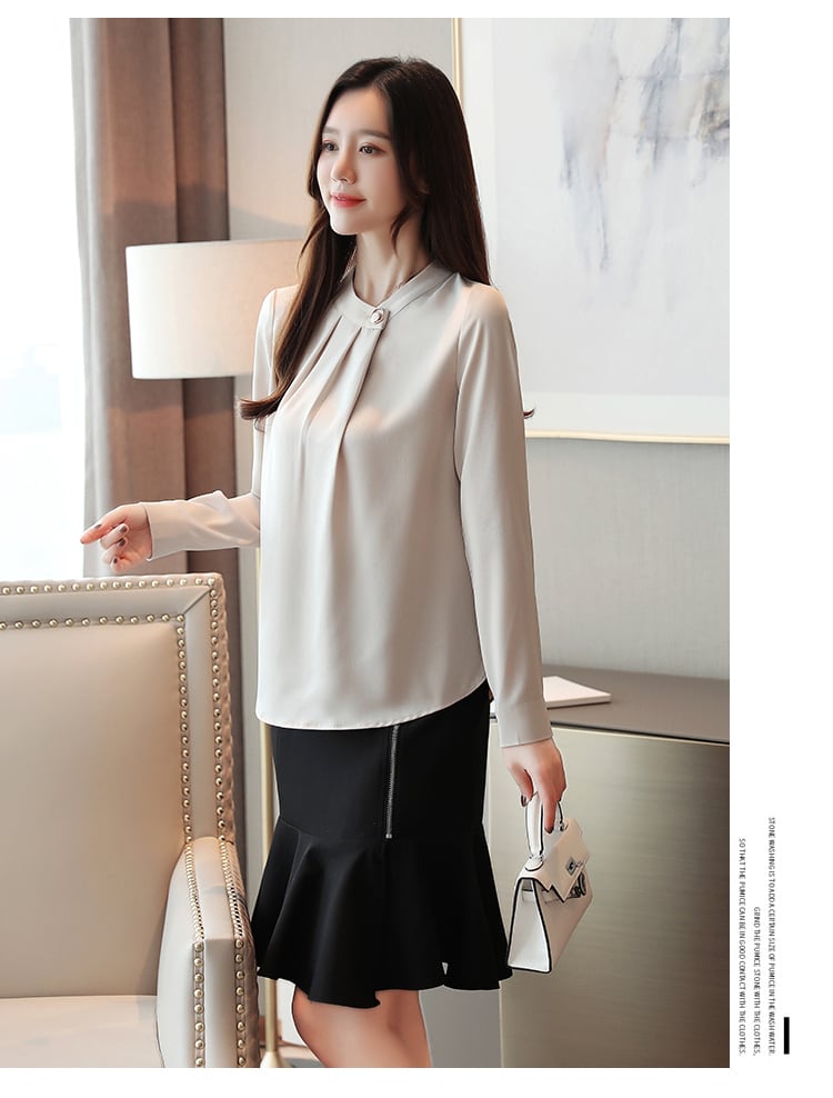 艶のある質感がエレガントな長袖ブラウス。