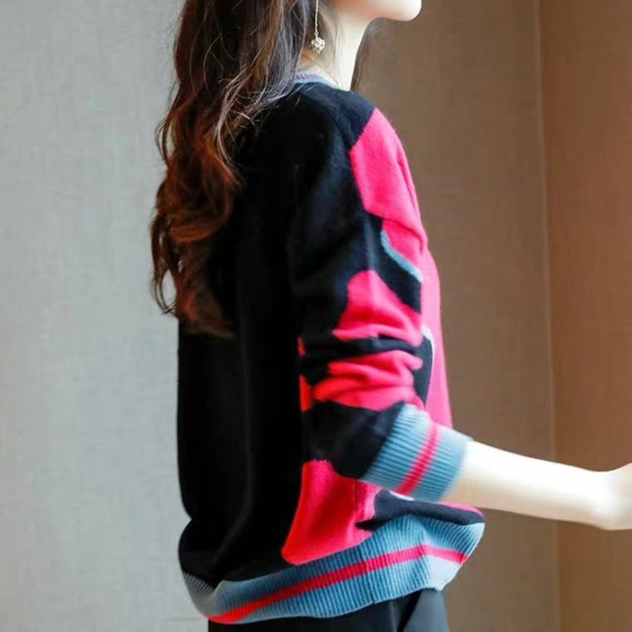 マーブル柄ニットプルオーバー トップス セーター 袖あり 長袖 ドロップショルダー ラウンドネック ストレート ふわふわ リブ 伸縮性 かわいい 大人可愛い カジュアル 大人 おしゃれ お洒落 レトロ こなれ感 個性的 主役級 存在感 柄 秋 冬 10代 20代 30代 40代 レディース 女性用 ママ お出かけ 休日 着回し 普段使い ファッション コーデ スタイル 楽ちん トレンド インスタ映え カジュアルコーデ かっこいい ニューレトロ S M L XL 2XL ゆったり 赤 レッド カラフル | Ritta