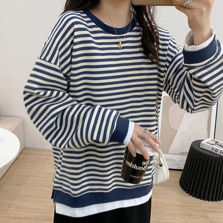 トップス カットソー ニットソー セーター プルオーバー ミディアム丈 袖あり 長袖 ドロップショルダー ラウンドネック 襟なし ストレート ワイド ドッキング 薄手 大人可愛い シンプル カジュアル 大人 おしゃれ 大人女子 こなれ感 ラフ ルーズ ボーダー シマ 春 秋 10代 20代 30代 40代 レディース 女性用 ママ 通勤 学生 通学 デート お出かけ 女子会 休日 普段使い 重ね着 韓国 オルチャン ファッション コーデ スタイル フリーサイズ ゆったり ゆる 黒 ブラック ネイビー | Ritta