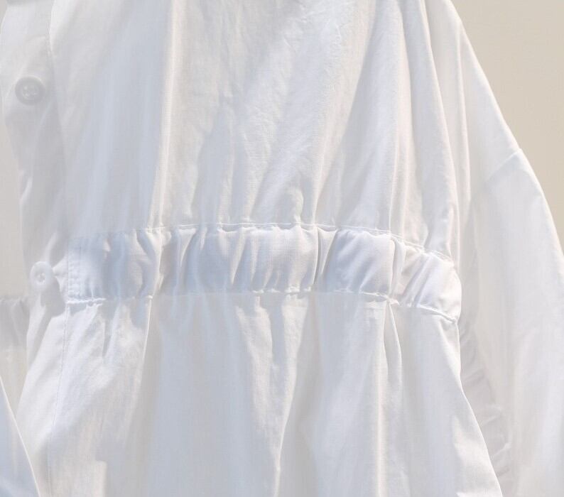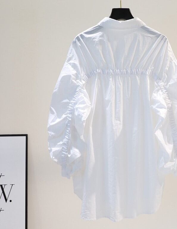 トップス シャツ 白シャツ ミディアム丈 長袖 ボリューム袖 パフスリーブ ドロップショルダー 襟付き フレア ワイド 切り替えデザイン 前開き 透け感 綿 薄手 かわいい 大人可愛い きれいめ シンプル カジュアル 上品 おしゃれ 大人女子 こなれ感 ラフ キュート ルーズ 個性的 無地 春 夏 10代 20代 30代 マタニティ オフィス OL 通勤 学生 通学 デート お出かけ 休日 普段使い 重ね着 韓国 オルチャン ファッション コーデ スタイル フリーサイズ ゆったり ゆる 白 ホワイト | Ritta