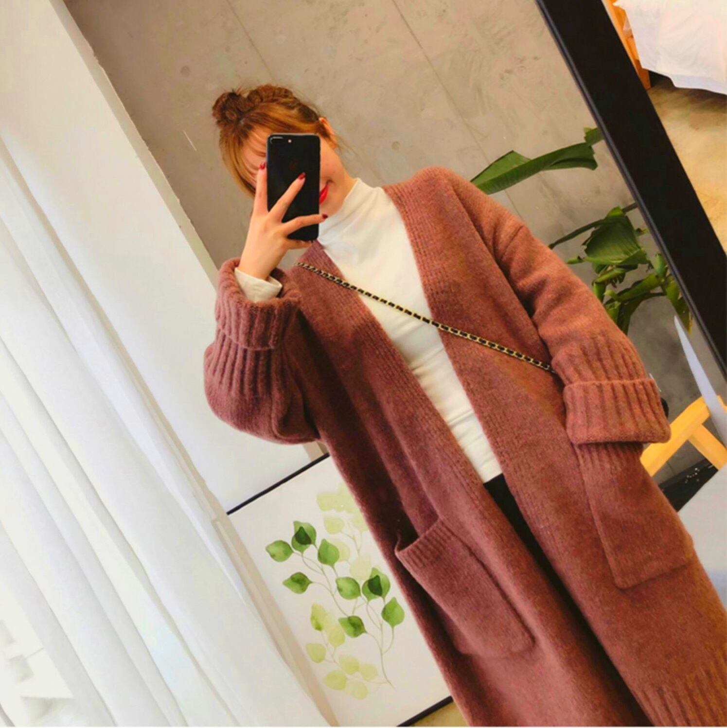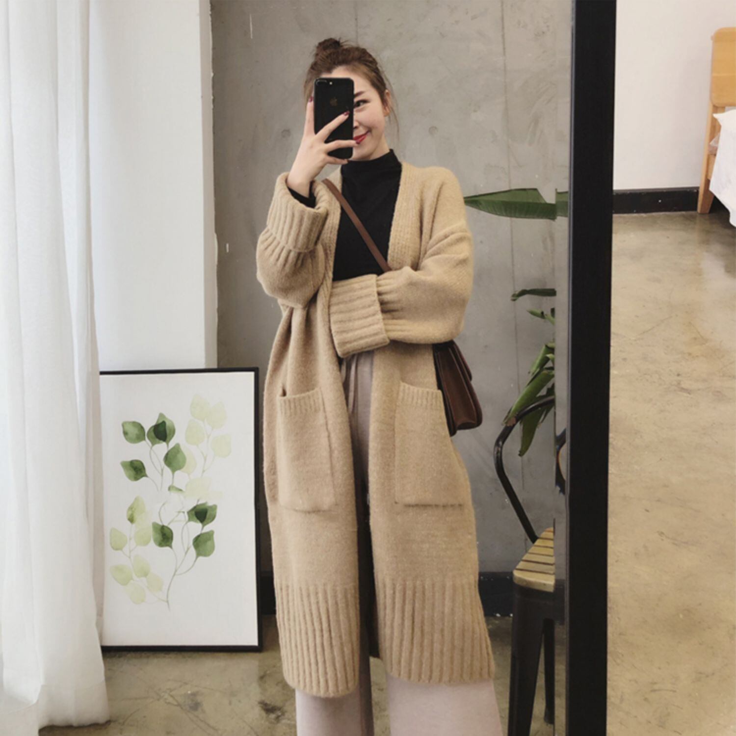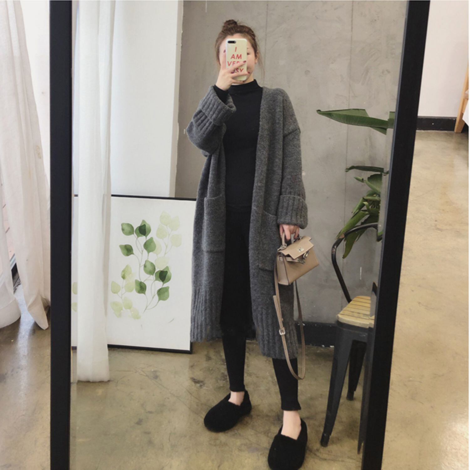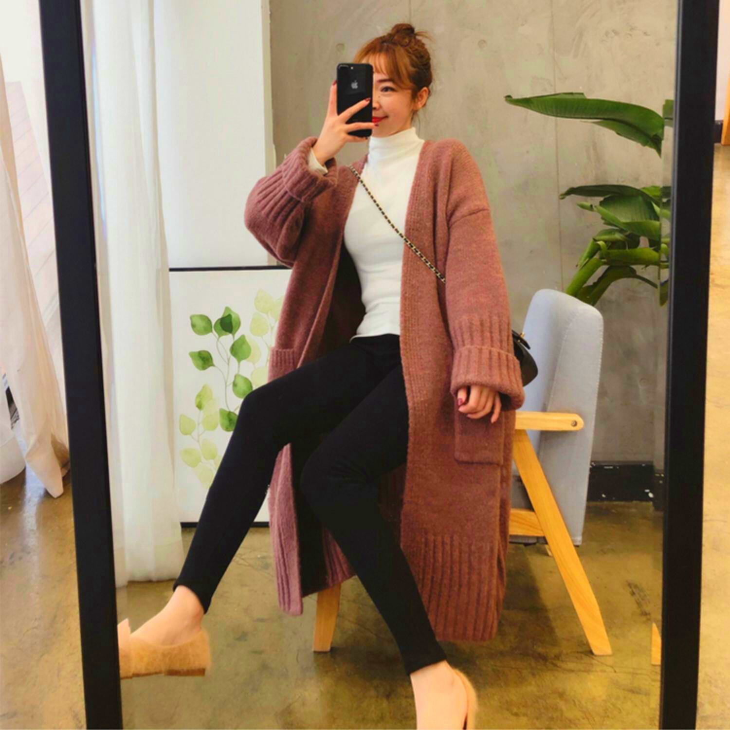 モコモコニットのロングカーディガンです。アウターとしても活躍します。