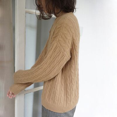 柔らかい生地とベーシックなケーブル編みが可愛いニットプルオーバー。