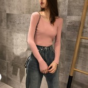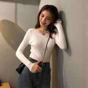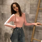 ボディラインにフィットして、デコルテを綺麗にみせてくれるシンプルニット。