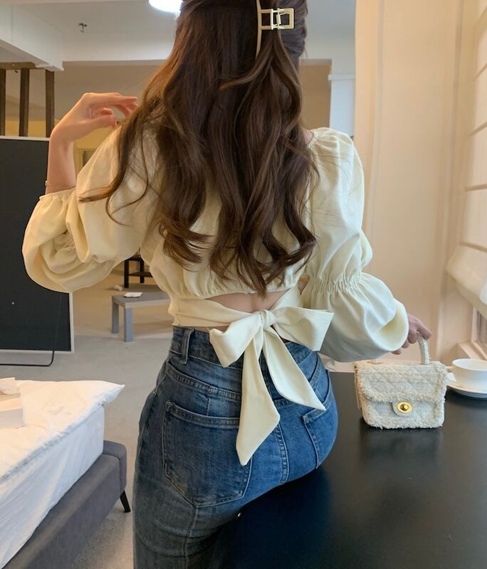 トップス ブラウス ショート ショート丈 袖あり 長袖 ボリューム袖 リボン バックリボン かわいい 大人可愛い きれいめ シンプル 大人 おしゃれ お洒落 大人可愛い 大人女子 こなれ感 ラブリー キュート ガーリー 抜け感 無地 春 秋 冬 10代 20代 30代 レディース 女性用 ママ 通勤 学生 通学 デート お出かけ 公園デビュー 女子会 休日 普段使い 韓国 韓国系 オルチャン ファッション コーデ スタイル モテ サイズ フリーサイズ 白 ホワイト 大人カラー 春カラー | Ritta