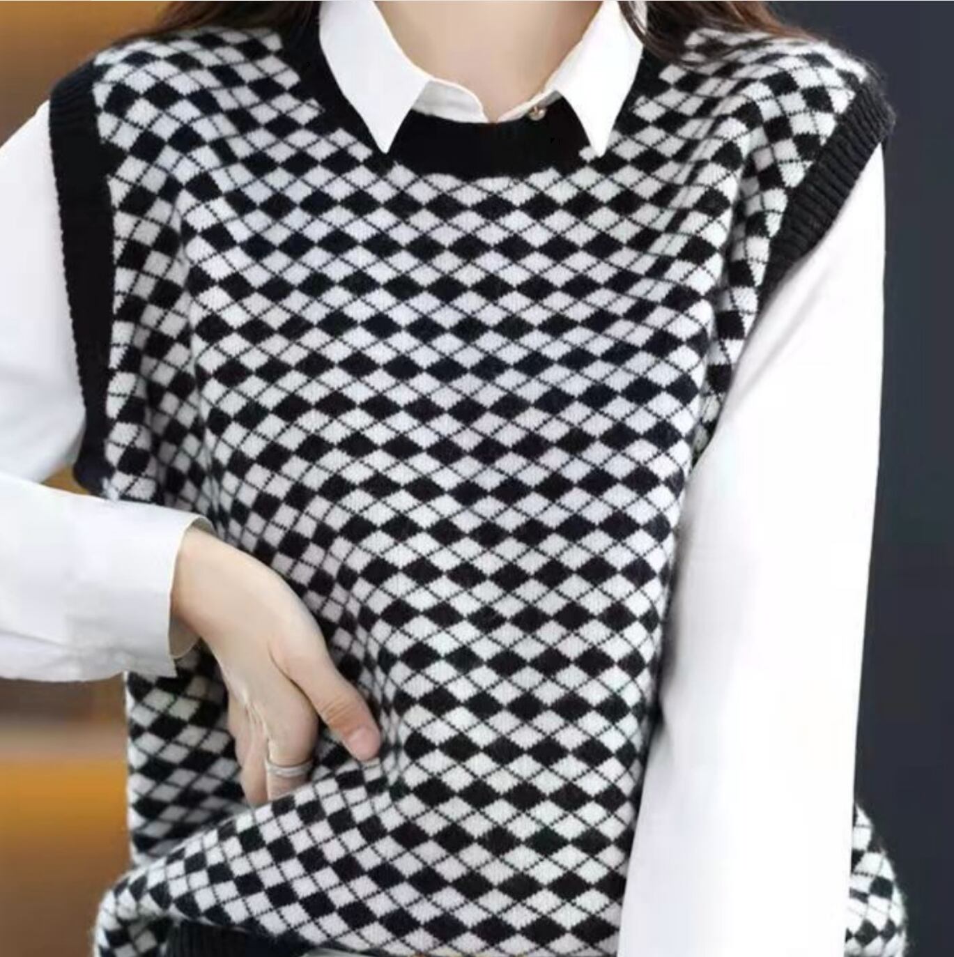 トップス ニットソー セーター ベスト 袖なし ノースリーブ Uネック スリム ニット かわいい 大人可愛い きれいめ シンプル カジュアル 大人 上品 おしゃれ お洒落 レトロ 大人可愛い 大人女子 ラブリー キュート ガーリー 主役級 存在感 柄 チェック柄 格子柄 春 秋 冬 10代 20代 レディース 女性用 学生 デート お出かけ 女子会 休日 パーティー イベント 旅行 着回し 普段使い 韓国系 ファッション コーデ スタイル 暖かい モテ トレンド 流行 インスタ映え M L | Ritta