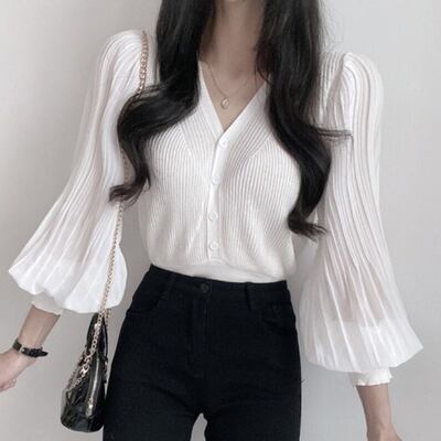 縦のラインで細見え効果、袖のふんわりで女子力アップ
