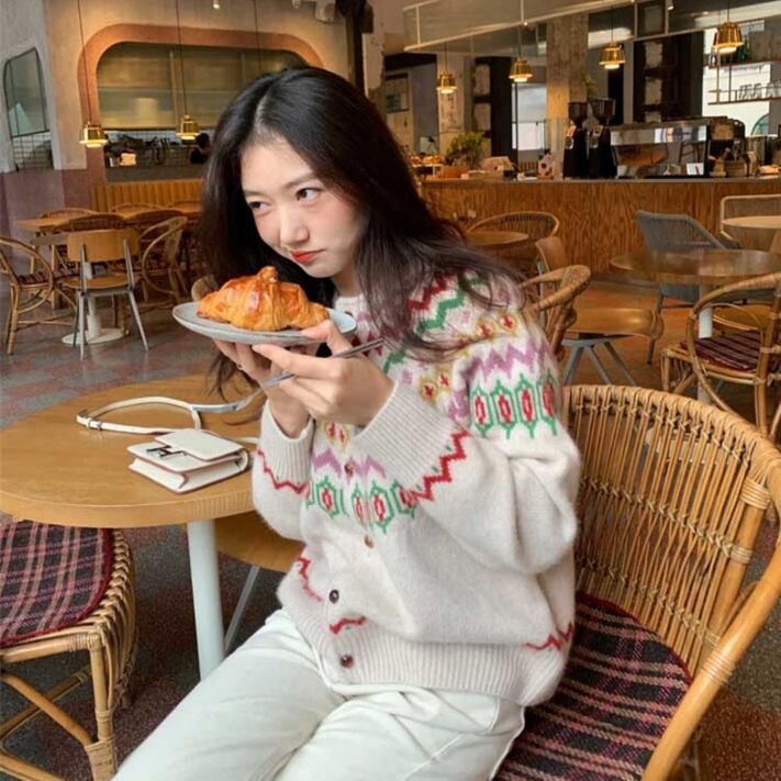 トップス セーター カーディガン 白トップス ミディアム丈 長袖 ラウンドネック ストレート 切り替えデザイン ふわふわ 前開き ニット かわいい カジュアル 大人 おしゃれ お洒落 レトロ 大人女子 こなれ感 ラブリー キュート ガーリー 個性的 主役級 存在感 柄 秋 冬 クリスマス 10代 20代 レディース 女性用 女の子 学生 通学 デート お出かけ 休日 パーティー イベント 普段使い お揃い 双子 ファッション コーデ スタイル 楽ちん インスタ映え S M L ゆったり ゆる アプリコット | Ritta