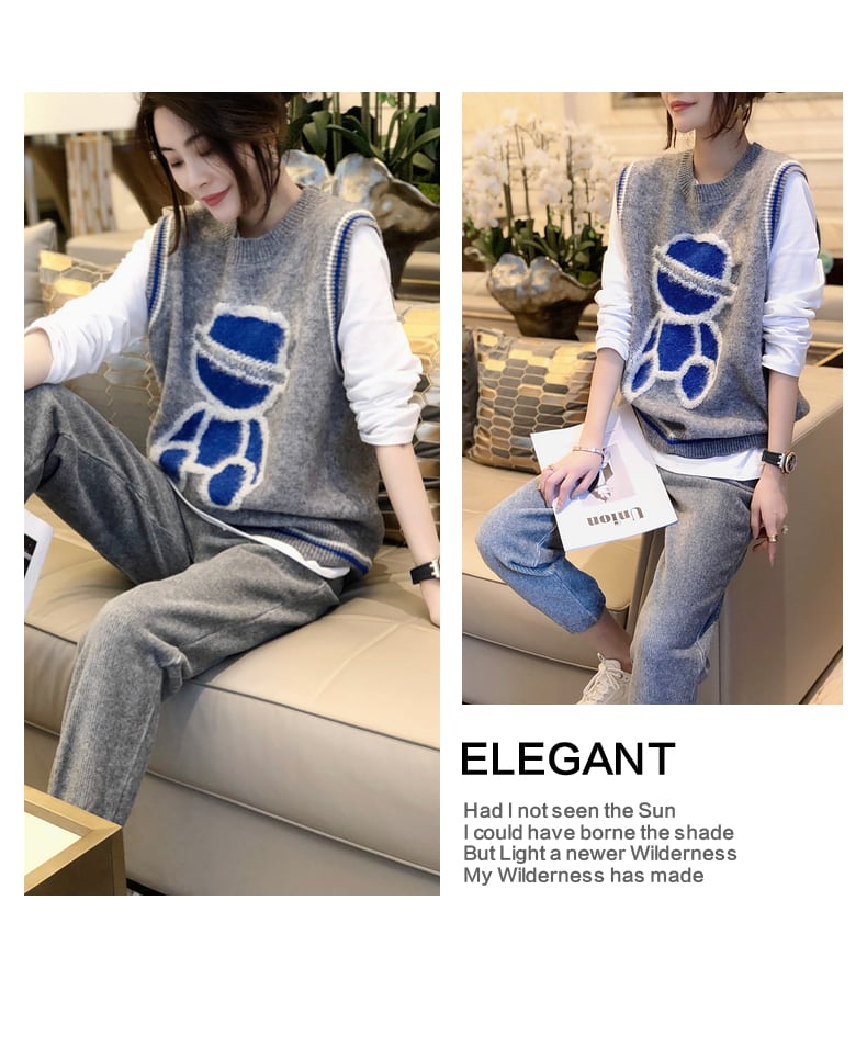 テディベアモチーフが可愛いニットプルオーバーベスト。