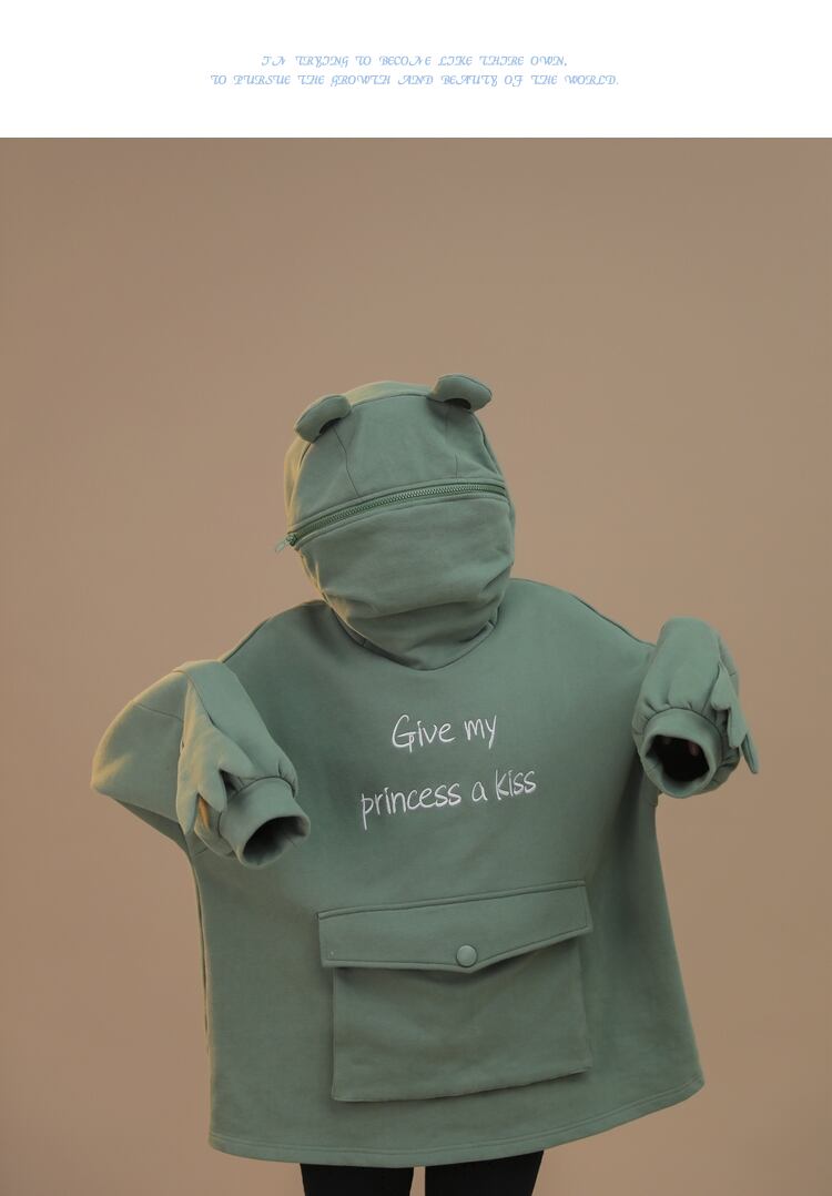 カエルデザインが個性的なゆったりパーカーフーディー。