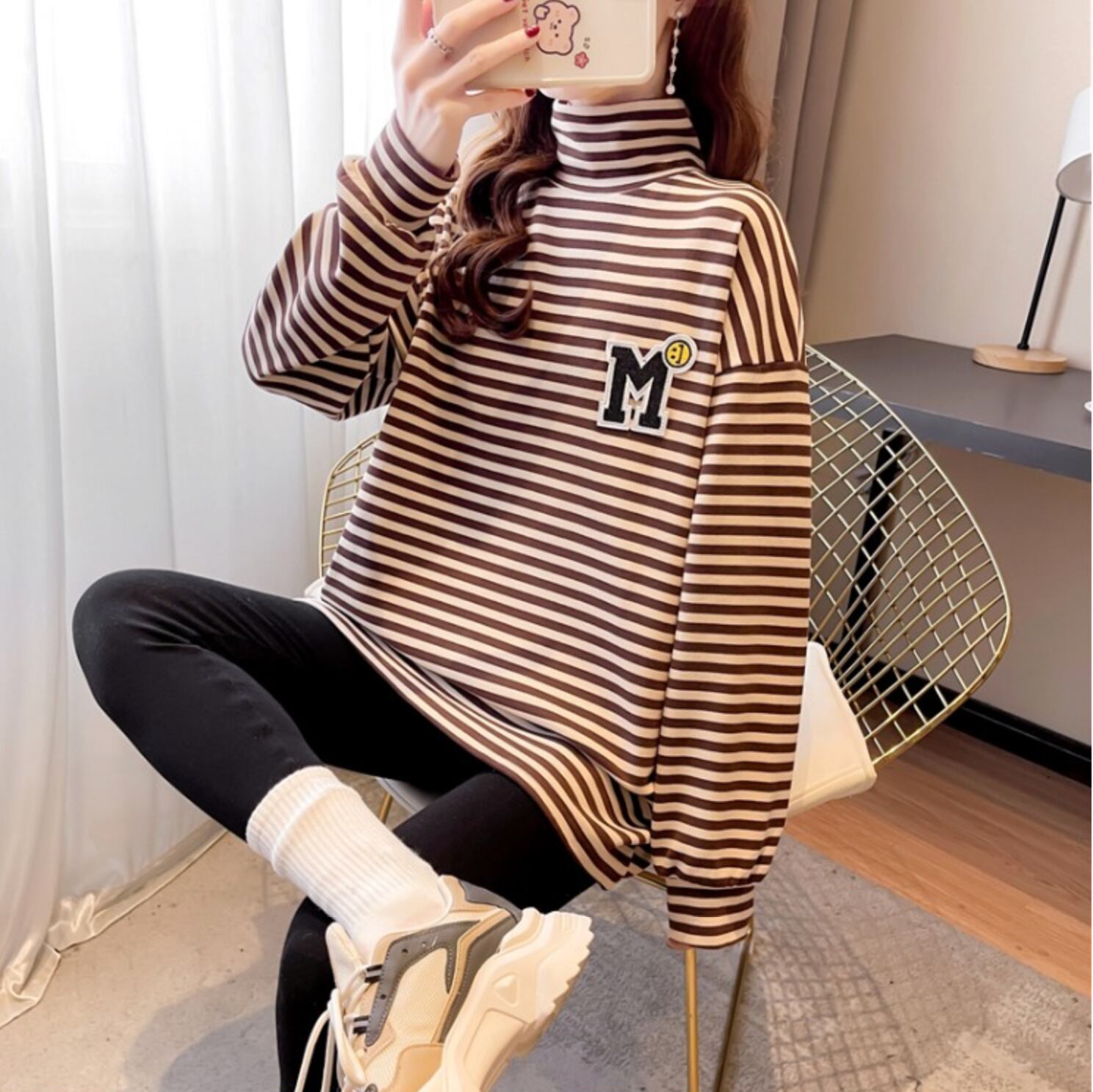 トップス カットソー 袖あり 長袖 ハイネック ストレート ワイド Aライン かわいい 大人可愛い きれいめ シンプル カジュアル 大人 上品 おしゃれ お洒落 かっこいい レトロ 大人女子 こなれ感 ラフ メンズライク マニッシュ ボーイッシュ スポーティー ルーズ 個性的 クール モード系 抜け感 ボーダー ストライプ 春 秋 冬 10代 20代 30代 40代 レディース 学生 デート お出かけ 女子会 休日 着回し 普段使い 韓国 韓国系 オルチャン ファッション コーデ スタイル 楽ちん モテ | Ritta