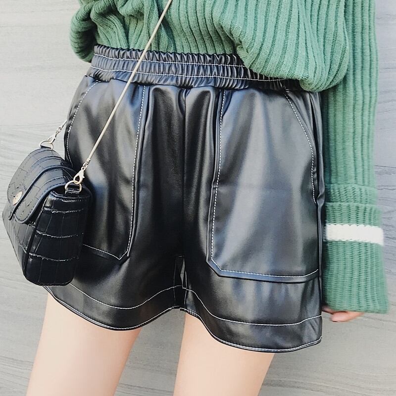 フェイクレザーショートパンツ ボトムス ショートパンツ ミニ ミニ丈 サイドスリット ポケット ハイウエスト ウエストゴム かわいい 大人可愛い きれいめ シンプル カジュアル 上品 おしゃれ お洒落 かっこいい レトロ 大人女子 こなれ感 個性的 クール 存在感 無地 春 秋 10代 20代 レディース 女性用 デート お出かけ 休日 着回し 普段使い ファッション コーデ スタイル 楽ちん 美脚 脚長 S M L XL 2XL 黒 ブラック スタイルアップ効果 オトナっぽい ステッチデザイン | Ritta
