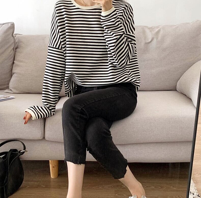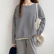 丁度良いボーダーの太さで、1枚で着たりインナーとして着たりと着回ししやすいアイテムです。