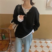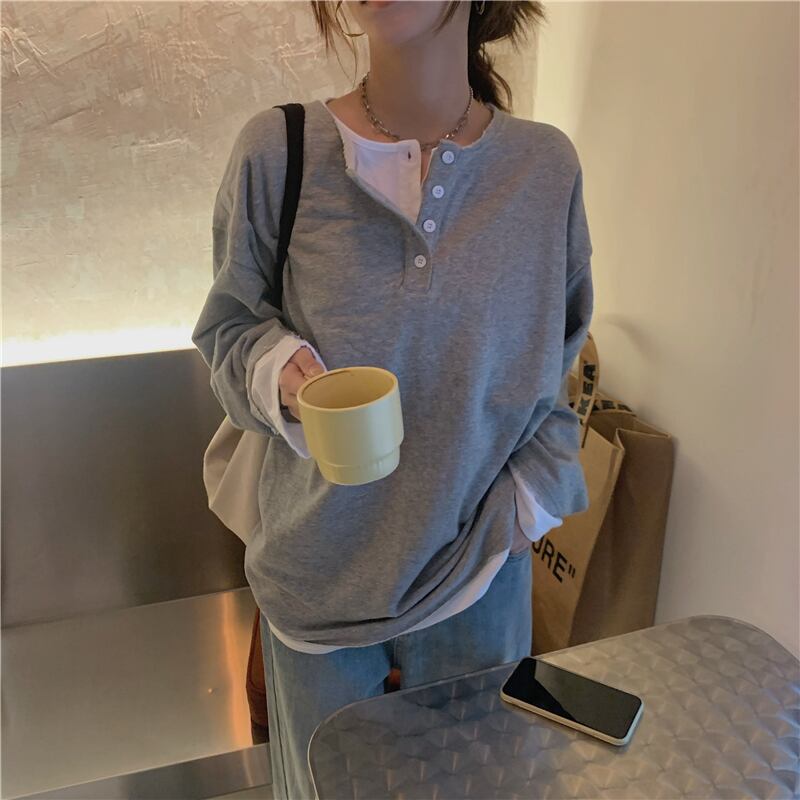 トップス カットソー 袖あり 長袖 ドロップショルダー ヘンリーネック 襟なし ストレート ドッキング 薄手 大人可愛い シンプル カジュアル おしゃれ お洒落 かっこいい 大人女子 こなれ感 ラフ メンズライク ボーイッシュ スポーティー ルーズ 抜け感 無地 オールシーズン シーズンレス レディース 女性用 ママ OL 学生 お出かけ 公園デビュー 休日 運動 ジム アウトドア イベント 旅行 着回し 普段使い 楽ちん 体系カバー 定番 小さいサイズ 大きいサイズ 大きめ ビッグサイズ ゆったり | Ritta