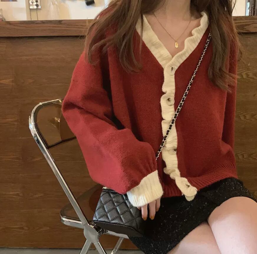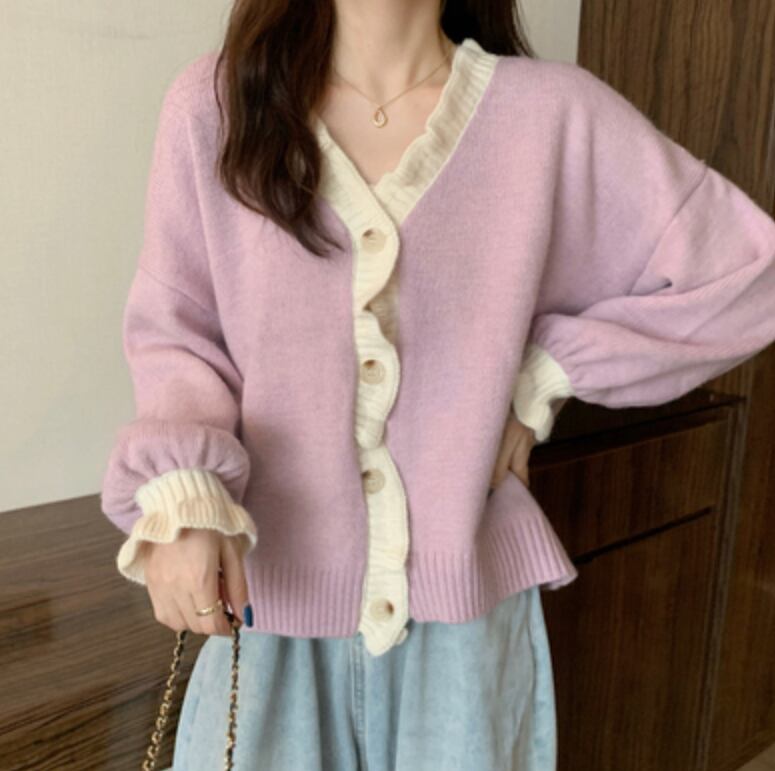 大きめフリルがかわいいあったかカーディガン