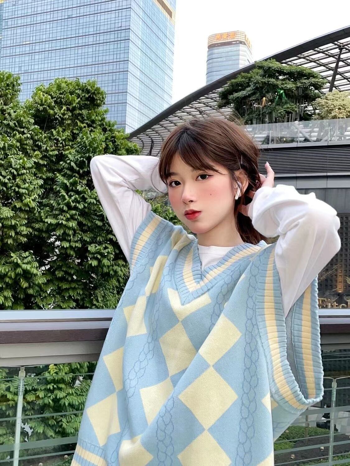 トップス ニットソー セーター 袖なし ノースリーブ Vネック 襟なし ニット 薄手 かわいい シンプル カジュアル 上品 おしゃれ お洒落 こなれ感 ラブリー キュート ガーリー ルーズ 主役級 とろみ感 柄 チェック柄 春 秋 10代 20代 レディース 女性用 学生 通学 デート お出かけ 女子会 お泊まり 休日 着回し 普段使い 重ね着 韓国 韓国系 ファッション コーデ スタイル 暖かい 防寒 モテ 体系カバー トレンド 流行 インスタ映え サイズ S M L 水色 | Ritta