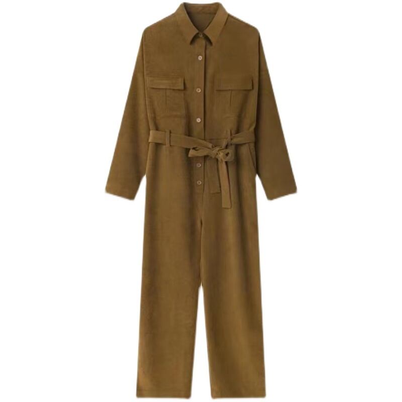 ジャンプスーツ ワンピース オールインワン ロング ロング丈 袖あり 長袖 襟付き ウエストリボン ポケット 綿 かわいい 大人可愛い シンプル カジュアル おしゃれ お洒落 かっこいい 大人女子 こなれ感 ラフ メンズライク ボーイッシュ ルーズ 個性的 存在感 無地 春 秋 10代 20代 30代 40代 レディース 女性用 ママ お出かけ 休日 アウトドア イベント 着回し 普段使い 重ね着 楽ちん 体型カバー S M L 黒 ブラック 青 ブルー キャメル | Ritta