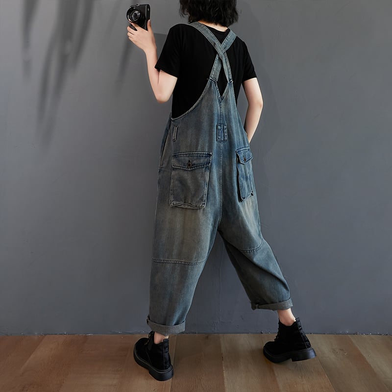 デニムサロペット バッククロス ワンピース オールインワン サロペット 袖なし ノースリーブ ポケット デニム ブルーデニム かわいい 大人可愛い シンプル カジュアル おしゃれ お洒落 かっこいい レトロ こなれ感 ラフ ボーイッシュ ルーズシルエット 大人カジュアル 存在感 無地 春 夏 秋 10代 20代 30代 40代 レディース 女性用 お出かけ 休日 アウトドア 着回し 普段使い 重ね着 ファッション コーデ スタイル 楽ちん 体型カバー S M L XL ゆったり ゆる 青 ブルー | Ritta