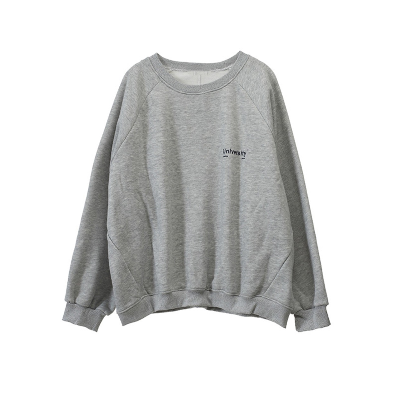 トップス トレーナー スウェット 長袖 ラグランスリーブ Uネック クルーネック 襟なし ワイド 伸縮性 厚手 かわいい カジュアル こなれ感 ラフ ボーイッシュ スポーティー 抜け感 プリント 春 秋 冬 レディース 女性用 ママ 学生 通学 デート お出かけ 公園デビュー お泊まり 休日 運動 ジム アウトドア イベント 旅行 着回し 普段使い 重ね着 韓国系 オルチャン ファッション コーデ スタイル 楽ちん 体系カバー 定番 トレンド 流行 インスタ映え 大きめ ゆったり ゆる 灰色 グレー | Ritta