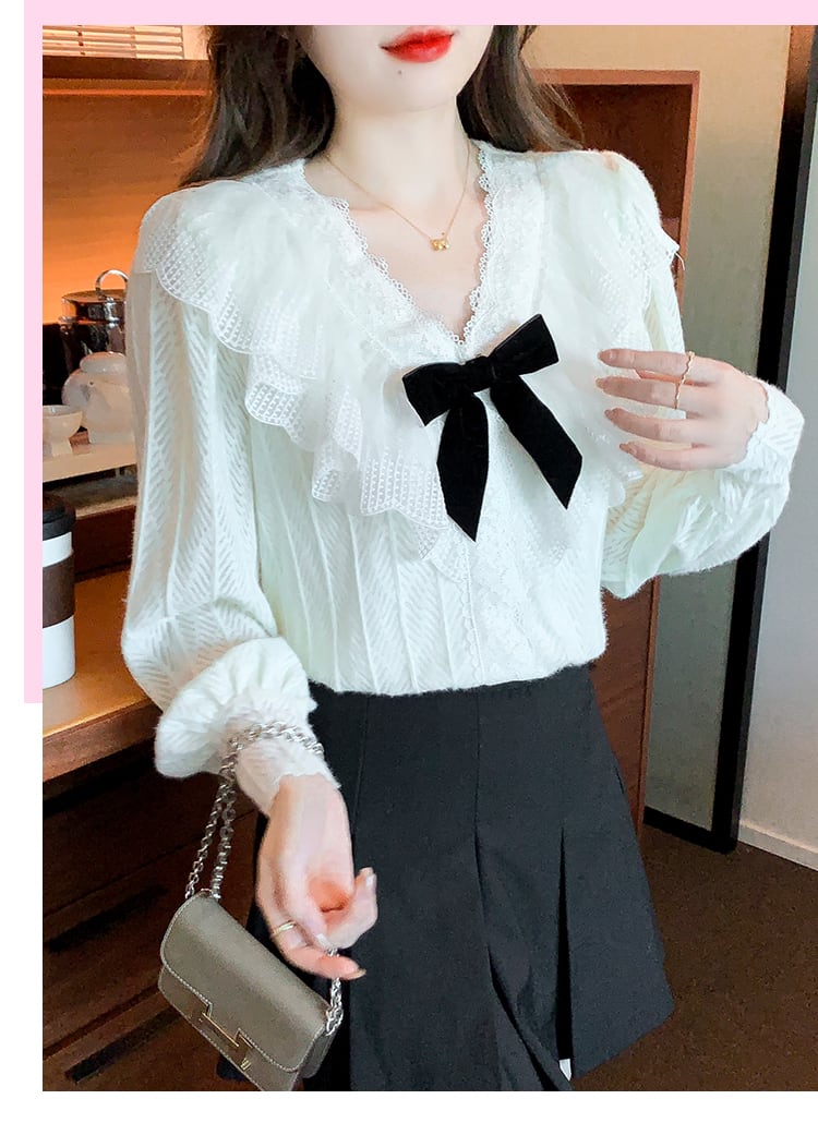 フリルと胸元のリボンがガーリーな、ゴージャスなブラウス。