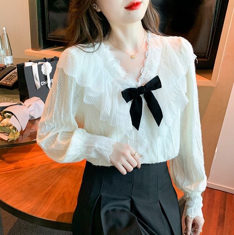 トップス ブラウス 白シャツ 白トップス 袖あり 長袖 パフスリーブ Vネック 襟付き スリム ストレート プリーツ レース フリル リボン 透け感 かわいい 大人可愛い 大人 上品 おしゃれ お洒落 レトロ 大人女子 ラブリー キュート ガーリー 個性的 セクシー エレガント 主役級 存在感 春 秋 レディース 女性用 OL デート お出かけ 女子会 お泊まり パーティー リゾート 旅行 高原 ホテル ガーデン レストラン 韓国系 ファッション スタイル モテ インスタ映え 小さいサイズ 大きいサイズ | Ritta
