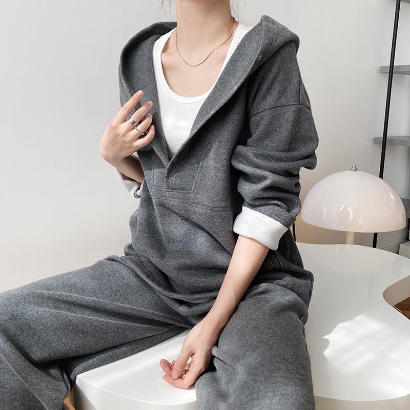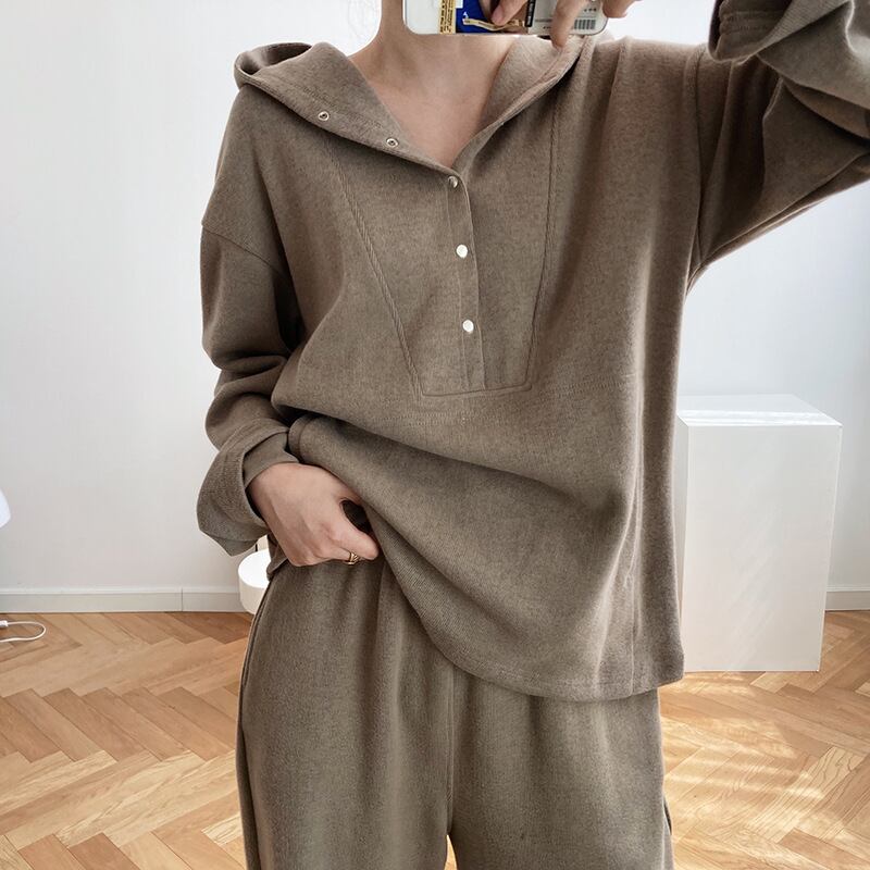 トップス ボトムス セットアップ プルオーバー パーカー ズボン スウェット ワイドパンツ ミディアム丈 長袖 ボリューム袖 ドロップショルダー 萌袖 Vネック ストレート ワイド フード付き 上下セット 2点セット ツーピース シンプル カジュアル 大人 おしゃれ かっこいい 大人女子 こなれ感 ラフ メンズライク スポーティー ルーズ 抜け感 無地 春 秋 10代 20代 30代 ママ 休日 運動 ジム ヨガ アウトドア 着回し 普段使い 重ね着 楽ちん 定番 S M L ゆったり ゆる 黒 ブラック | Ritta