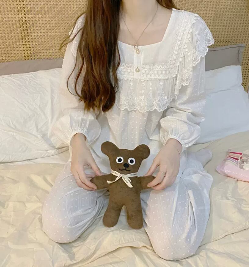 セットアップ ルームウェア パジャマ 白トップス 膝下 袖あり 長袖 フリル 薄手 上下セット 2点セット かわいい 大人可愛い きれいめ シンプル 大人 上品 おしゃれ お洒落 大人女子 ラブリー キュート ガーリー 春 夏 秋 冬 オールシーズン シーズンレス 10代 20代 30代 レディース 女性用 ママ デート 女子会 お泊まり 休日 旅行 ホテル 普段使い お揃い 韓国 韓国系 オルチャン ファッション スタイル 楽ちん モテ プレゼント ギフト サイズ フリーサイズ ゆる 色展開 白 | Ritta