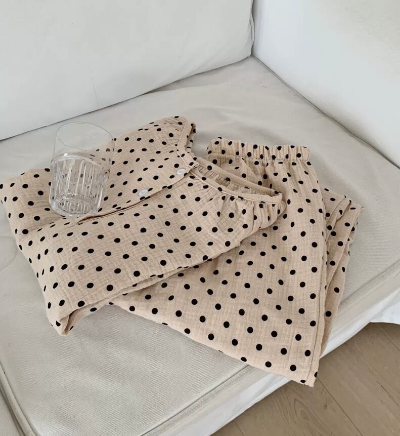 ドット柄がかわいいセットアップパジャマ