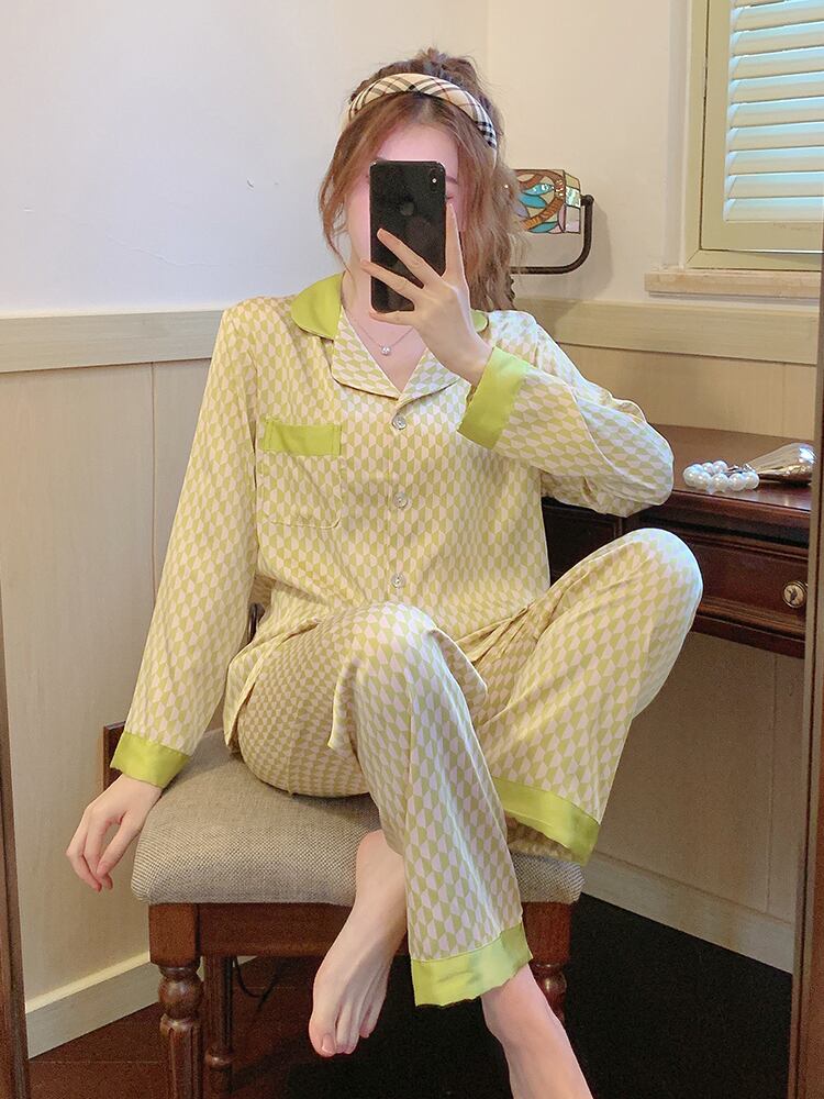 セットアップ ルームウェア パジャマ 部屋着 寝巻き ナイトウェア 膝下 袖あり 長袖 Vネック 襟付き 前開き 上下セット 2点セット かわいい 大人可愛い きれいめ シンプル おしゃれ お洒落 大人女子 こなれ感 ラブリー キュート ガーリー 主役級 存在感 柄 春 夏 秋 冬 オールシーズン シーズンレス 10代 20代 30代 40代 OL 学生 お泊まり 休日 普段使い お揃い 双子 韓国 韓国系 オルチャン ファッション コーデ スタイル 楽ちん モテ サイズ M L XL グリーン 緑 黄 | Ritta