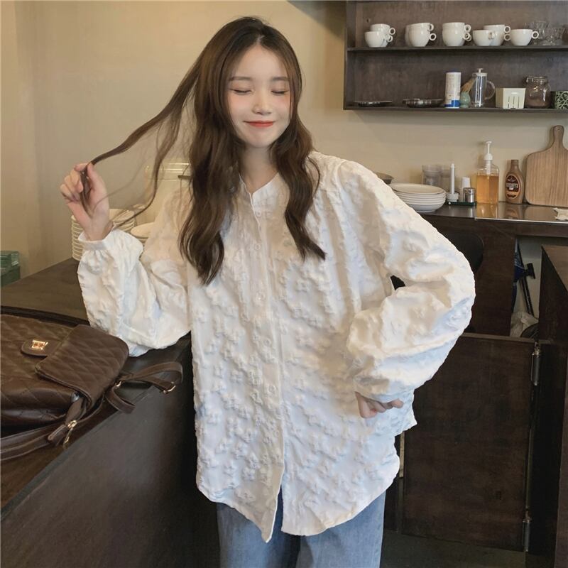 トップス シャツ 白シャツ 白トップス 袖あり 長袖 ボリューム袖 萌袖 襟なし バンドカラー ワイド 刺繍 前開き かわいい 大人可愛い カジュアル 大人 上品 おしゃれ お洒落 大人女子 こなれ感 ラフ ラブリー キュート ガーリー ルーズ 主役級 存在感 柄 花柄 春 秋 レディース 女性用 ママ OL 学生 デート お出かけ 女子会 お泊まり パーティー リゾート 旅行 高原 ホテル ガーデン レストラン 着回し 普段使い スタイル 楽ちん 体系カバー トレンド 流行 インスタ映え フリーサイズ | Ritta